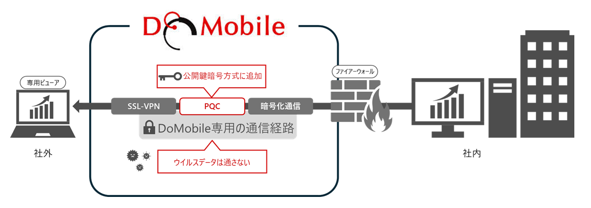 今回他社に先駆けて、リモートアクセス通信に量子コンピューターを使ったサイバー攻撃にも十分な耐性を持つPQC機能を持ったリモートアクセスソフトウェア製品「DoMobile Ver.5」をリリースします。(当社26年1月調べ)