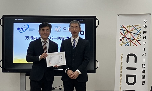この取り組みが、万博の安全を守ることに大きく貢献したと評価され、このたび、国立研究開発法人情報通信研究機構(以下、NICT)から感謝状を授与されました。