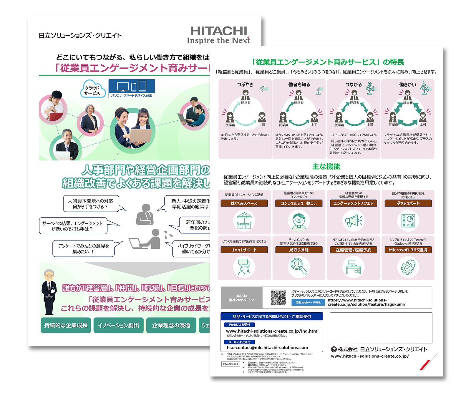 エンゲージメント向上、コミュニケーション改善、サーベイ活用から、具体的な解決策をホワイトペーパーでご紹介します。また、成功事例やサービスの内容・価格などが分かる紹介資料もご提供しています。