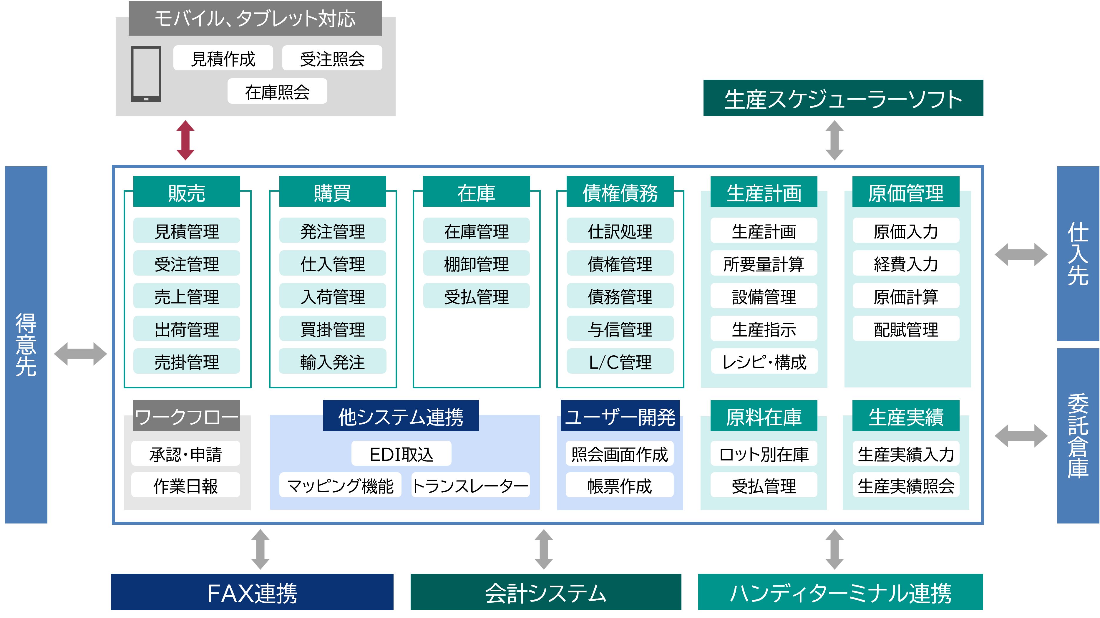 - これまで多数の基幹システム構築経験を持つSEが現場でヒアリング・要件定義を行い、お客さまの課題を解決する販売管理・生産管理システムを構築します。