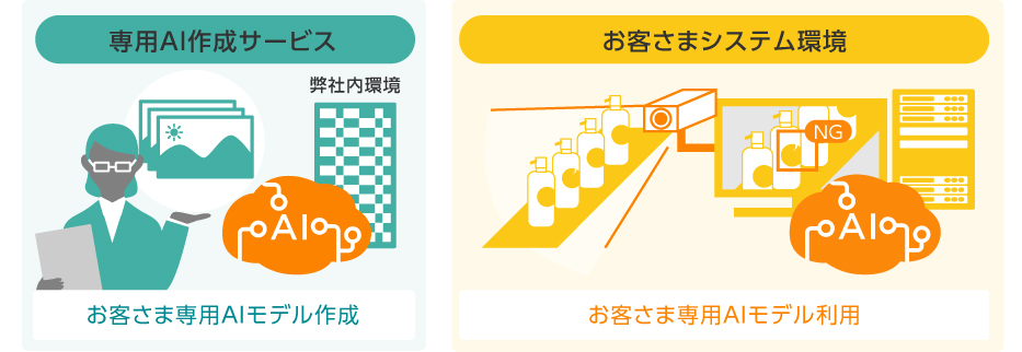 お客さまの検査したい対象物は世の中で唯一のものが多いため、それを認識するAIモデルは、新たに学習・作成する必要があります。
