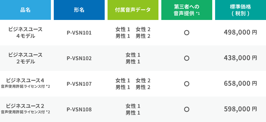 また、インターネット上での音声の公開、IVR(自動応答システム)でのご利用は「第三者によるご視聴」に含まれます。 - *2 作成した音声を有償で提供する場合に必要な、音声使用許諾ライセンス付きです。